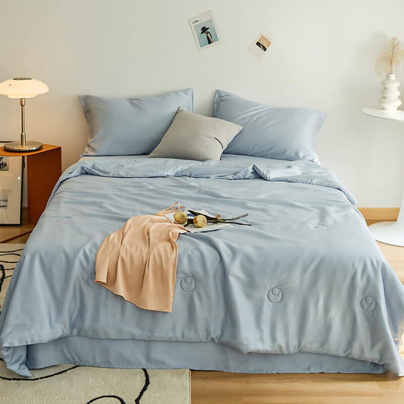 【Material】This summer cool blanket is made of silk and filled with 100% Cotton. Cool, soft and silky to the touch.